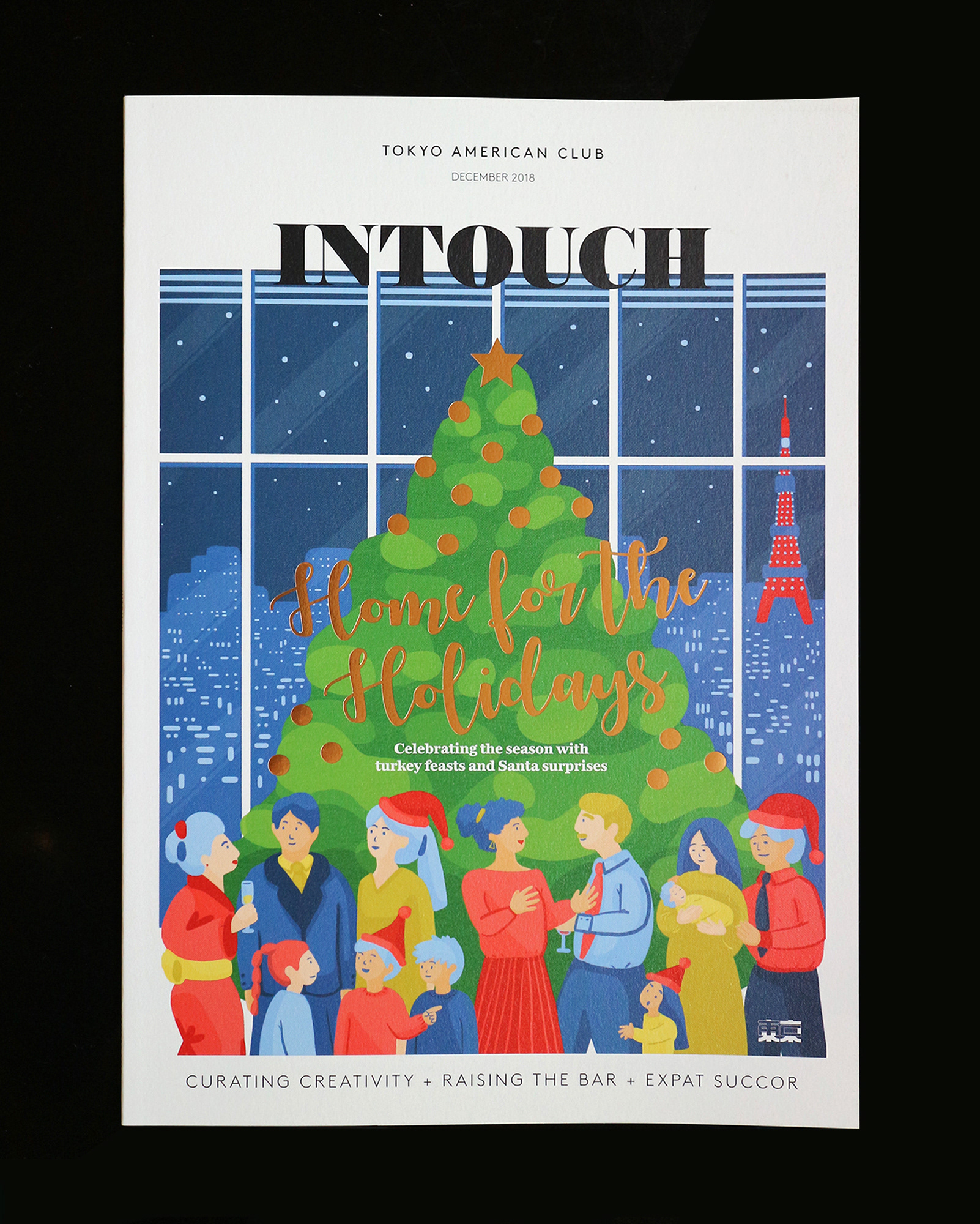 Cover design for 2018 Christmas issue at the Tokyo American Club. I also created a greetings animation, in collaboration with motion designer/filmmaker, Yuta Komine, which you can see below.